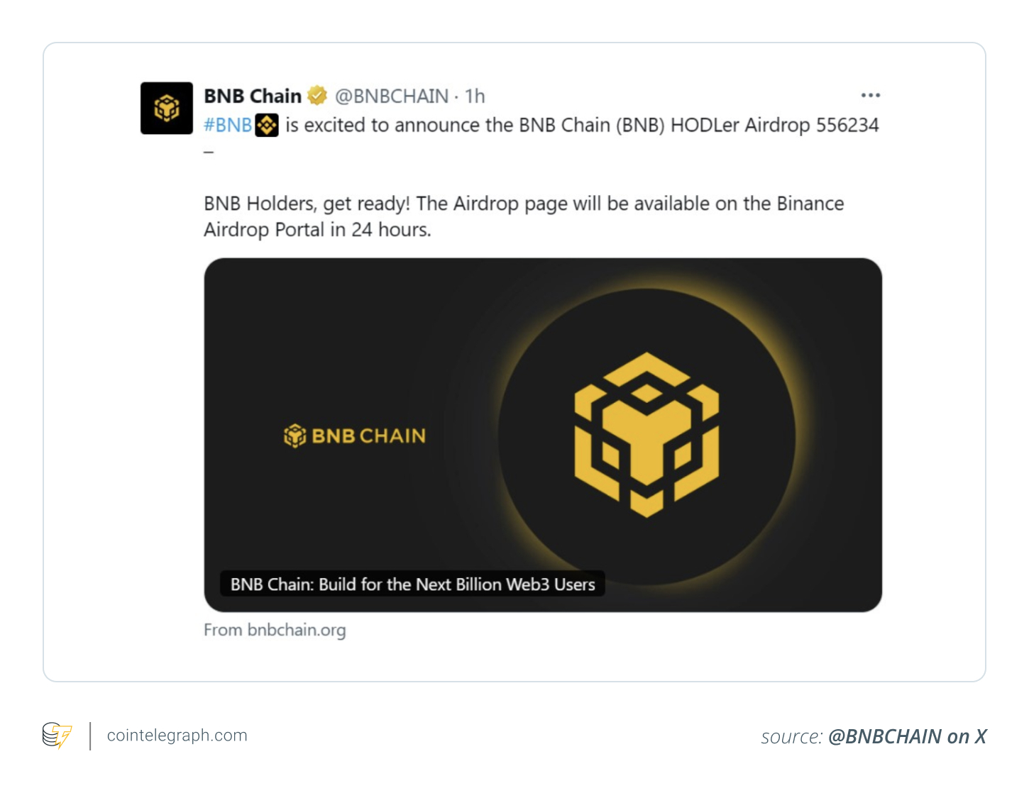 BNB Chain’in resmi X hesabı ele geçirildi ve yaklaşık 4 milyon takipçiye kimlik avı bağlantıları gönderildi. Ekip daha sonra kontrolü ele alarak uyarıda bulundu. Kaosun ortasında saldırganın yalnızca “4.000 dolar” kazandığına dair bir şaka ortaya çıktı.