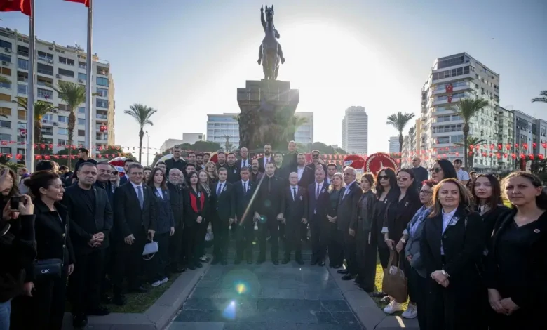 Saygı duruşu ve İstiklal Marşı’nın okunmasının ardından Atatürk anıtına çelenk sunuldu. Törende konuşan CHP İzmir İl Başkanı Çağatay Güç, bugün burada bir milletin kaderini değiştiren, çaresizliği umuda dönüştüren, yoksul bir halktan onurlu bir Cumhuriyet yaratan büyük Gazi önderi Mustafa Kemal Atatürk’ü anmak için bir araya geldiklerini söyledi. Güç, “Atatürk sadece bir komutan ya da devlet kurucusu değil; milletine özgüven vermiş, çağdaşlaşmanın önünü açmış, milletin bilimi, aklı ve özgür düşüncesini pusulası haline getirmiş bir devrimcidir. Onun liderliğinde bu ülke yoksulluktan çıkıp bağımsızlığa kavuşmuş, çağdaş dünyayla eşit seviyeye ulaşma iradesini kazanmış, yurttaşlık bilincine, laikliğe, hukuka ve fırsat eşitliğine dayalı bir devlet düzeni kurmuştur.”