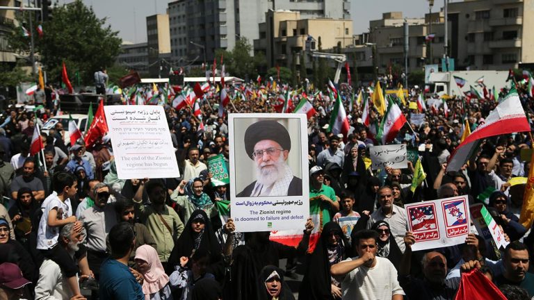 Tahran’daki İnkılap Meydanı’nda toplanan İranlılar ABD’nin saldırılarını protesto etti